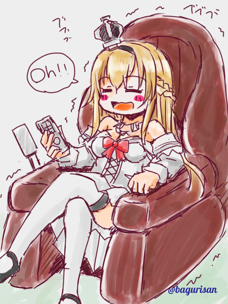 マッサージチェアでくつろぐウォースパイトさんです